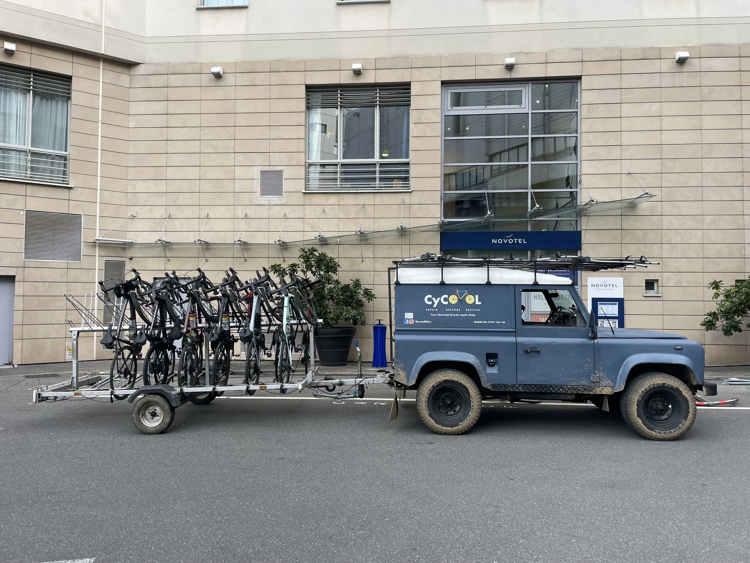 We offer both our 16 and 24 cycle carriage trailers for hire. Ready for every journey they come equipped with all necessary straps, lightboards and locks. Their design means that bikes are able to be loaded without any disassembly required, leaving the trailers just as they went onto it. There is no contact between hard surfaces and other bikes when in transit, minimising the risk of damage. Our trailers are available to hire with or without a driver and can be delivered and collected to any UK location. With our Land Rover upfront, we can accommodate 32 cycles at once or 50 across 2 vehicles.